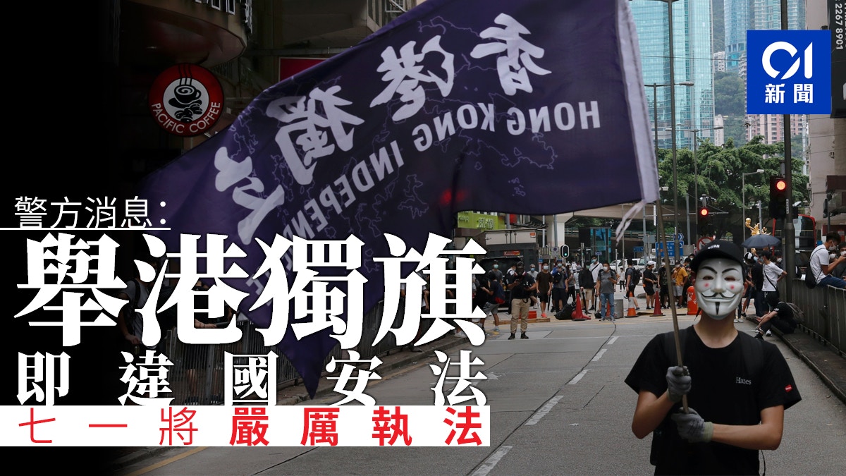 Jul 01, 2020 · 《港區國安法》昨日(30日)正式刊憲並即時生效,下午1時許已有大批市民在銅鑼灣聚集,期間有人高叫「香港獨立,唯一出路」的口號,在場警員首次舉起針對《港區國安法》的紫色旗幟,警告在場人士涉嫌煽動或教唆他人分裂國家,有可能違反《港區國安法》,如市民無視警告,警方將採取拘捕及其他執法行動。 國安法. Jul 01, 2020 · 為因應「港版國安法」的執行,港警特別新設置了「紫色警告旗」,旗幟上寫著「這是警方發出的警告,你們現在展示旗幟或橫額、叫喊口號、或其他行為,有分裂國家或顛覆國家政權等意圖,有可能構成『港版國安法』的罪行,你們可能會被拘捕及刑事檢控。